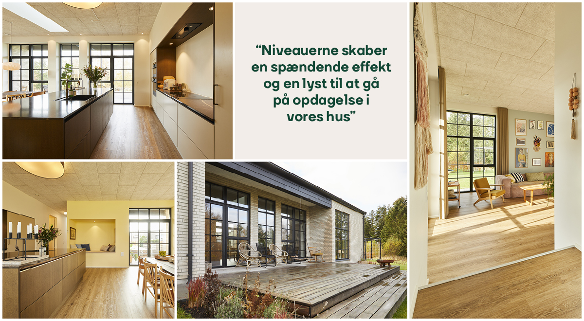 En følelse af at gå på opdagelse, og at der gemmer sig noget mere, end man lige tror. Det var det, Louise og Morten havde et ønske om at skabe i deres nye hus – og med en skrånende grund var der potentiale for at opnå lige præcis det.