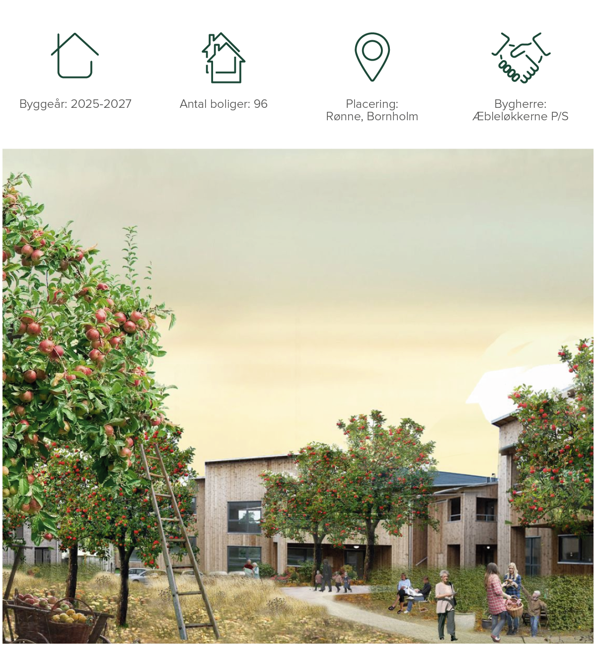 Æbleløkkerne bliver et nyt boligkvarter i Rønne bestående af 68 lejligheder og 28 rækkehuse.