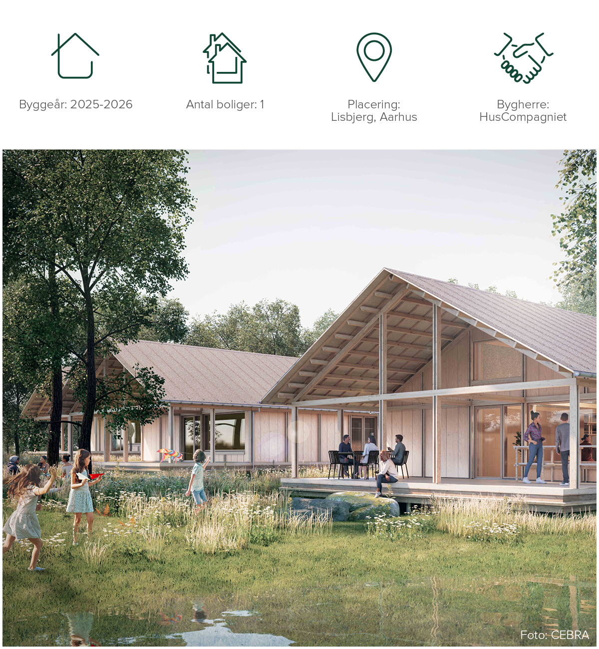 HusCompagniet deltager i indsatsen Boligbyggeri fra 4 til 1 Planet med eksempelbyggeriet Villa1. Villa1 er i første omgang et eksempelhus, som skal opføres i Aarhus og er tegnet af arkitektvirksomheden CEBRA. Eksempelhuset er en del af indsatsen ’Boligbyggeri fra 4 til 1 planet’, der er støttet af Realdania og Villum Fonden. Indsatsen, har som mål at udvikle løsninger og opføre eksempler på boliger, som reducerer det samlede klimaaftryk med op til 75 procent sammenlignet med gængs praksis ved nybyggeri af boliger.